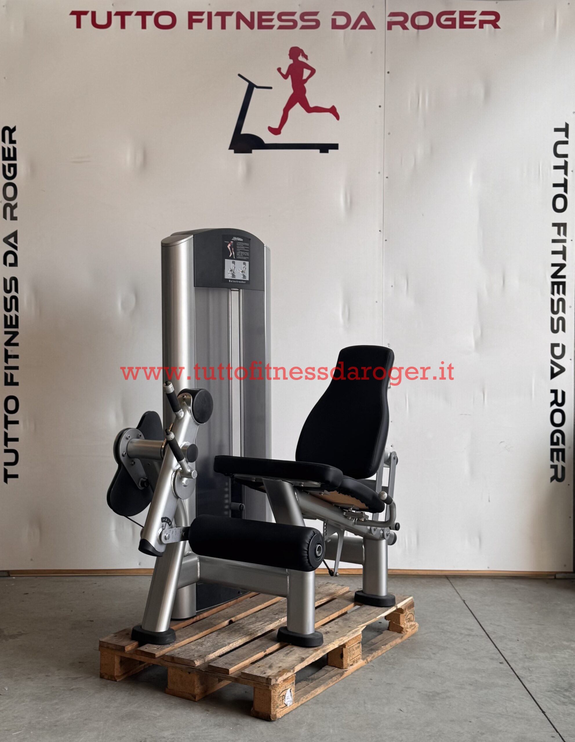Leg extension Life Fitness, usata ricondizionata, colore grigio con pelli nere.